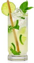 Garnish with a slice of lime on the side of the glass and a couple if fresh mint leaves on top.